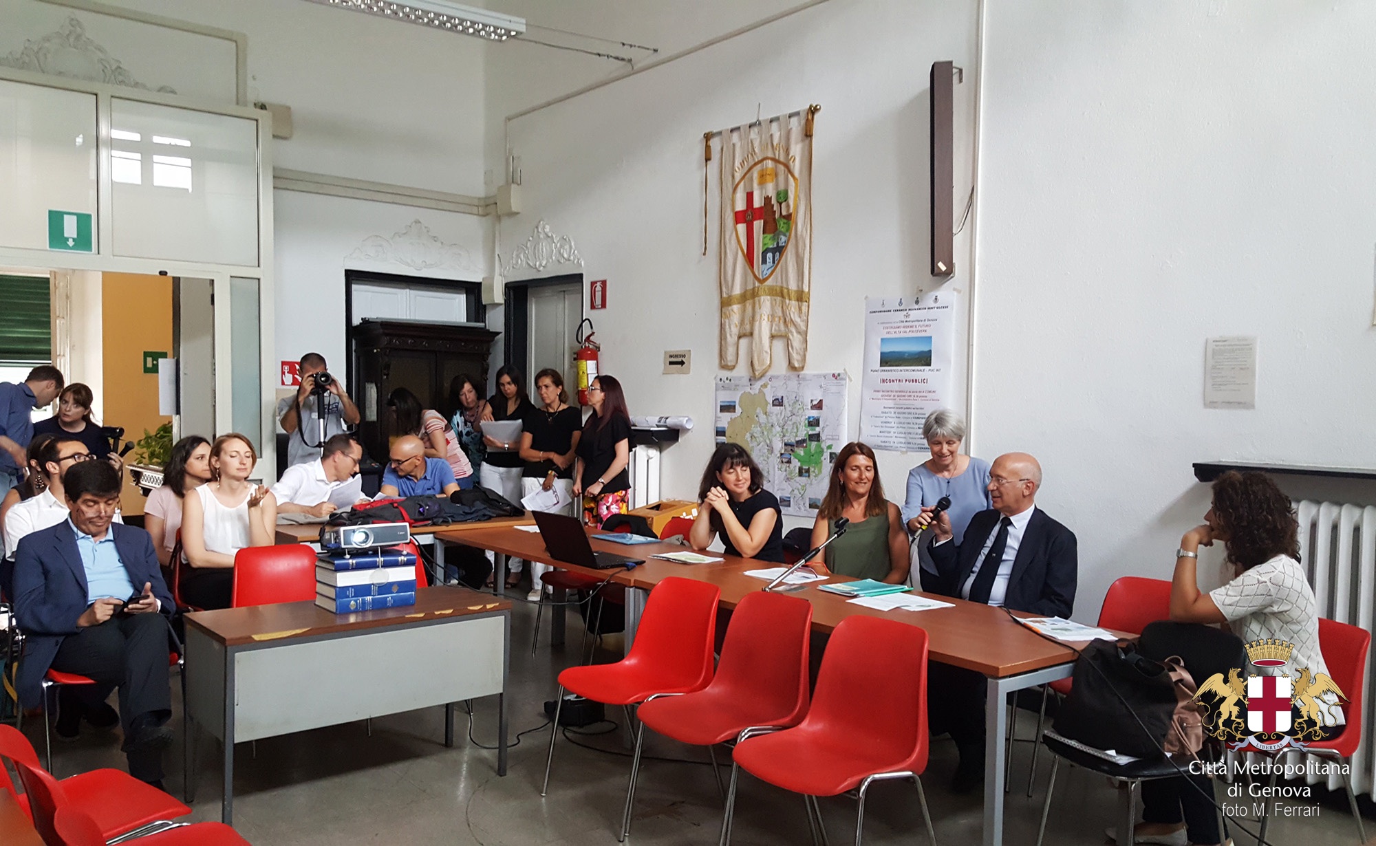 Incontro di presentazione generale presso la sede del Municipio V Valpolcevera a Genova Bolzaneto per parlare del futuro dei comuni della Valpolcevera per quanto riguarda il PUC (piano urbanistico comunale). Iniziative di divulgazione e trasparenza aperte a tutta la popolazione. nell’ambito del progetto del PUC intercomunale di Città metropolitana di Genova