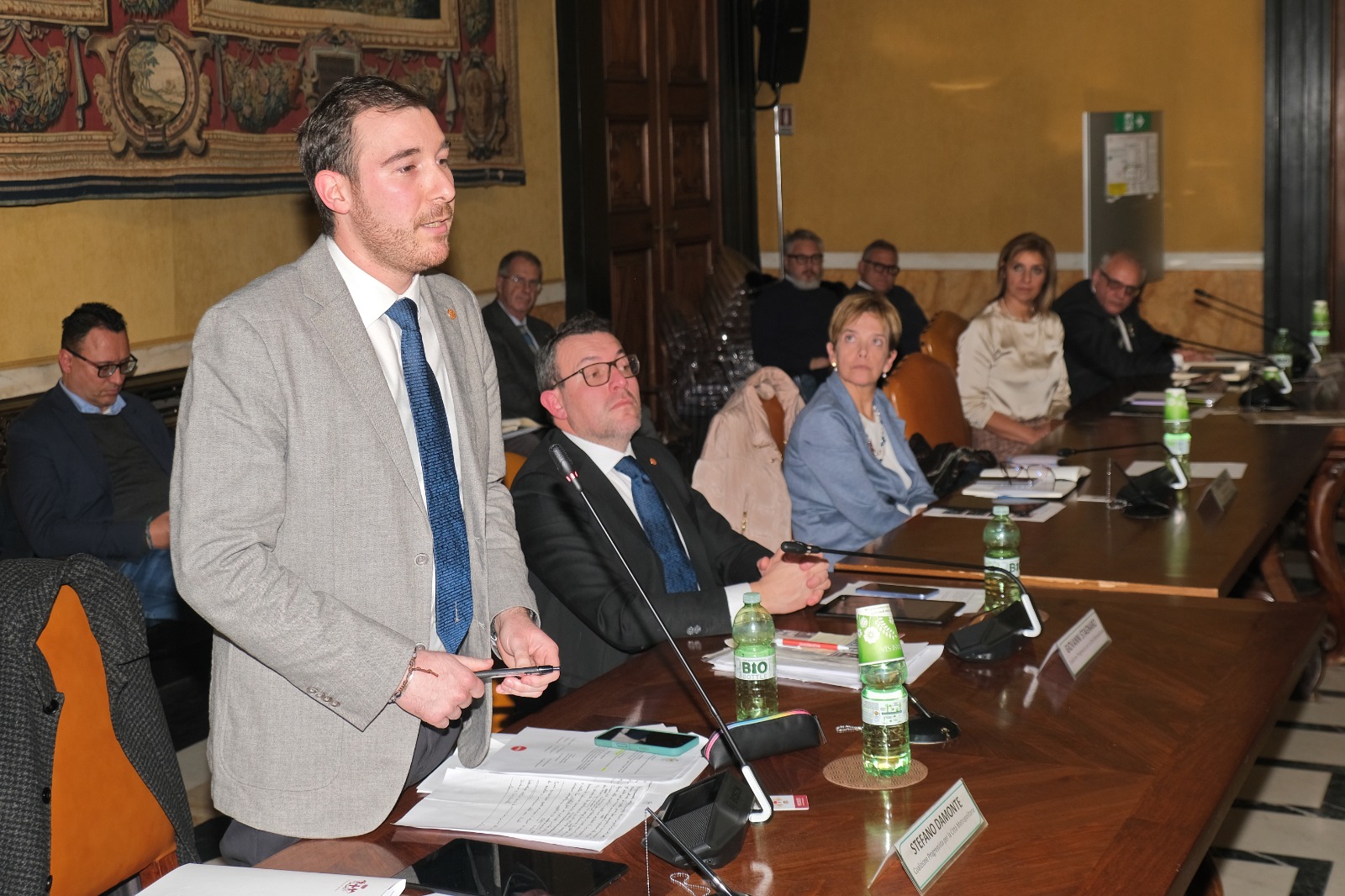Un momento del consiglio metropolitano con l'intervento di Stefano Damonte